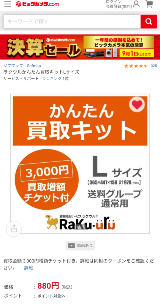 ビックカメラで売っている買取キット 880円 売りたいものをダンボールに詰めて送... -