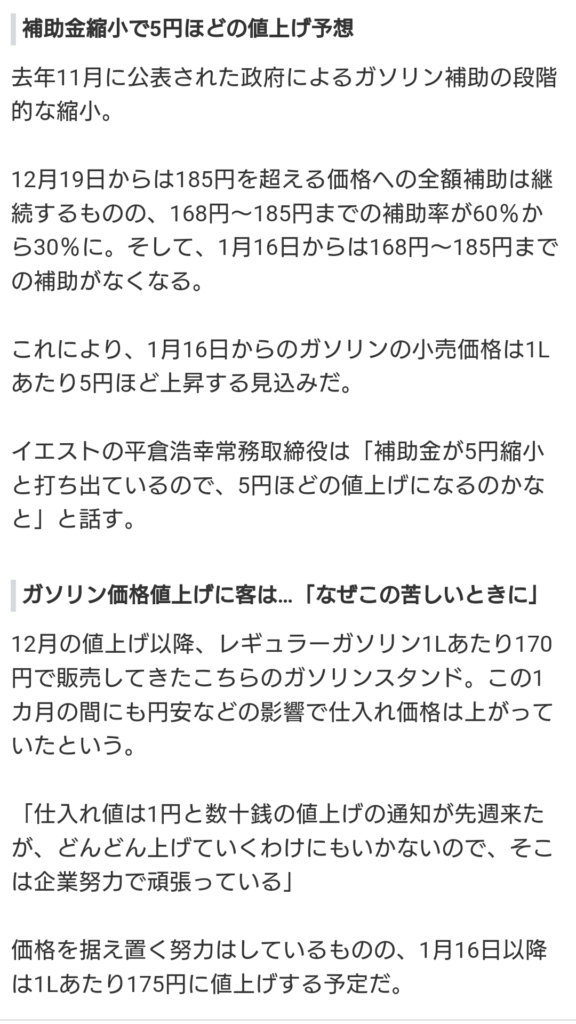 ガソリン代があがることで、いろんな値上げのつながっているから、何とかしてほしいものだ。