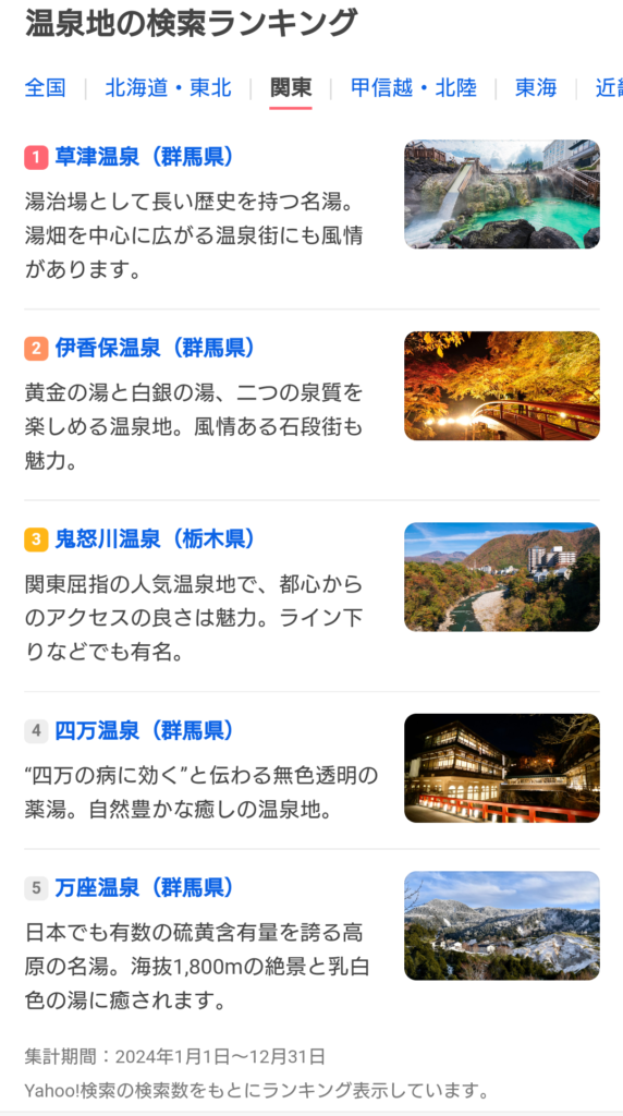 ちょこちょこ「温泉」「旅行」「お風呂」とか検索していたからかな、こういう記事がアップされやすいみたい。