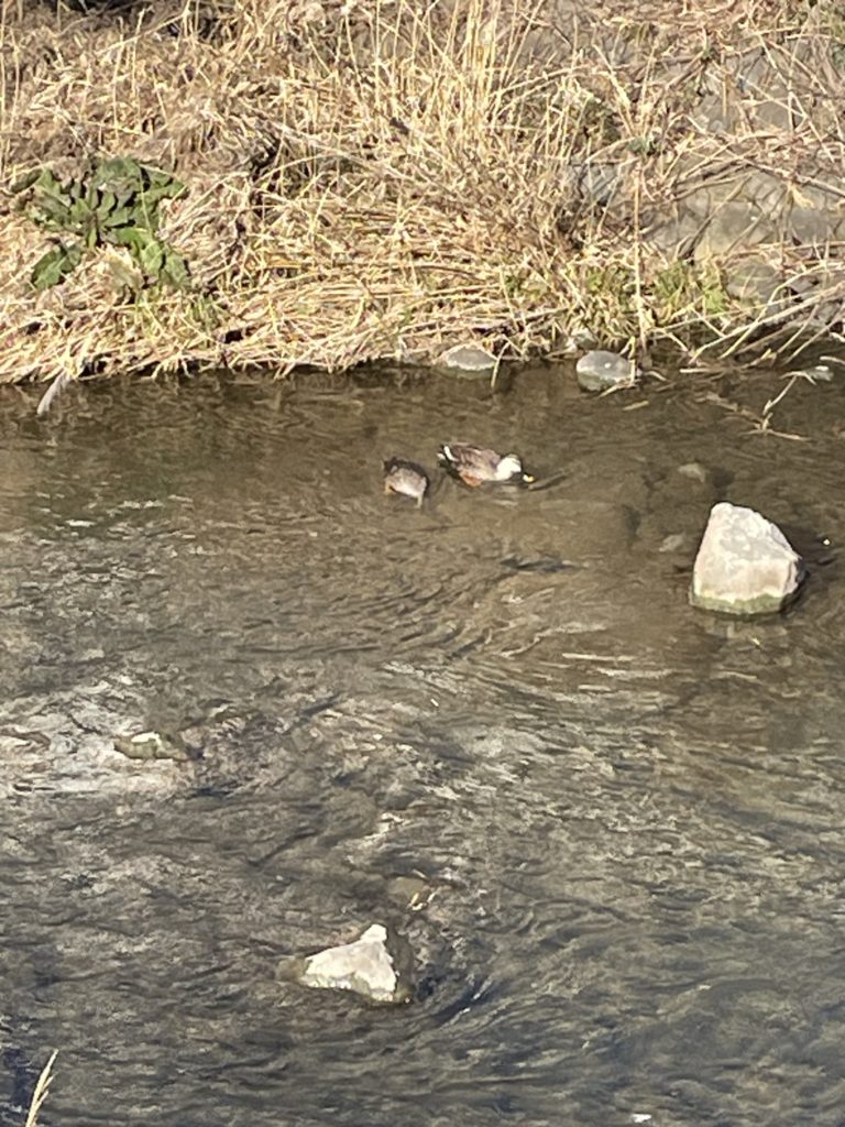 会社近くの川で気持ち良さそうに泳いでいたのは? 鴨?寒い川のはずなのに頭突っ込...
