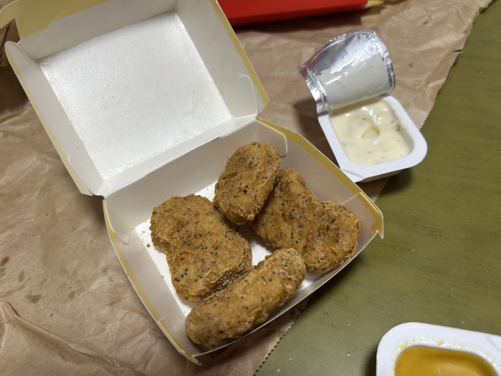 最近、ナゲットのソースはいろいろなものがあるよね。たまに頼んでみるけど、50%くらいはリピートしてる。そんな当たりはずれも楽しみの一つとして食べてます。
