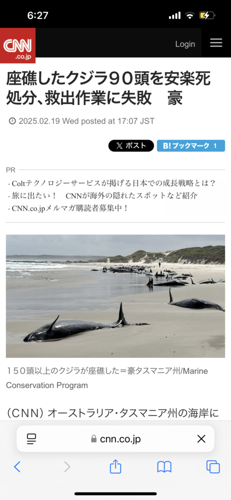 この日、オーストラリアでもクジラ打ち上がる。