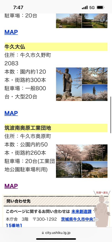 気になって調べてみたら、牛久市が桜🌸の名所として紹介してました。