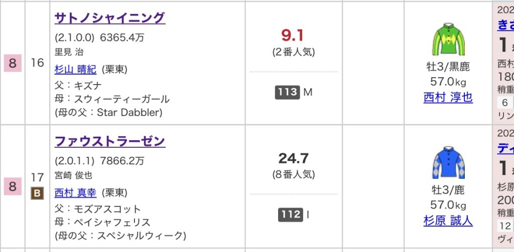 相手はこの3頭。ホープルステークスの1〜3着馬とサトノシャイニングの組み合わせ。
