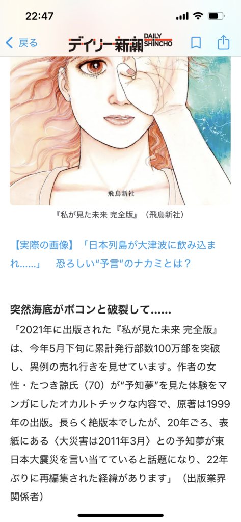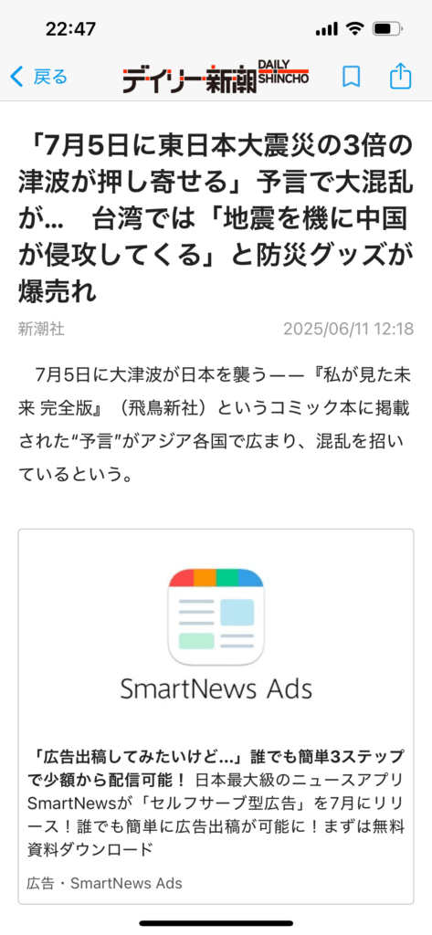 7月5日。たつきりょうのフィリピンあたりボコン説。地震に乗じた中国侵略説。そして、一番ありうる太平洋戦争中にアメリカの空母から誤って水爆を海中に落としたやつが、そろそろ腐食ピークで爆発する説。これは国も言ってるけど、いつかあるかもしれんやつ。