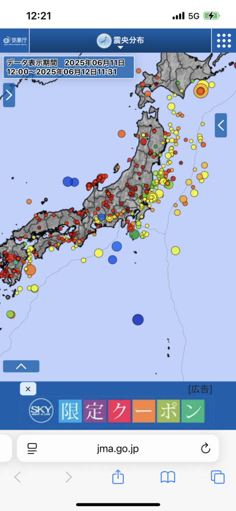 さて、追記した。 夜というか、さっき見たら紀伊半島沖でM5クラスでたね。 無感地...