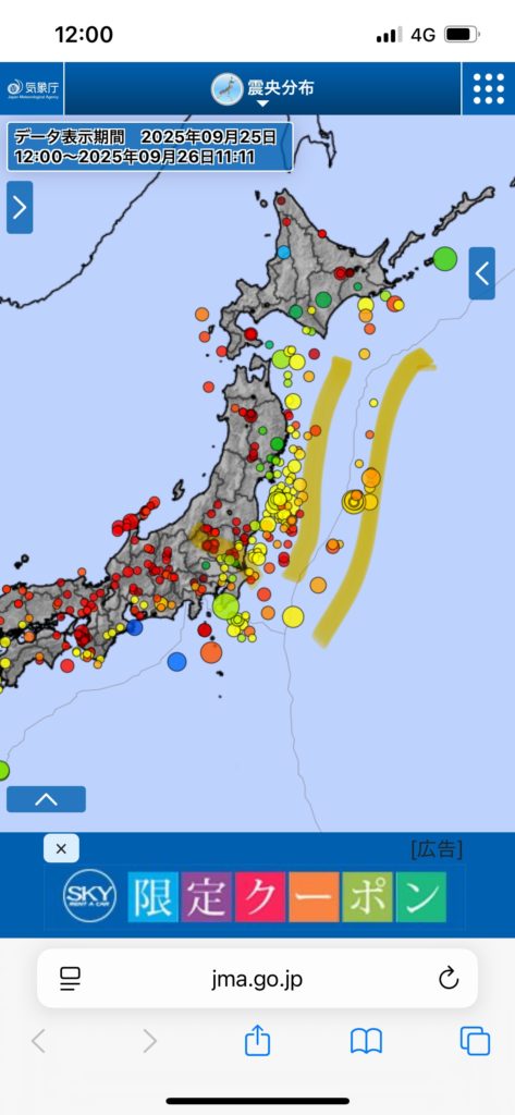 太平洋プレート境界ですごい数の地震起きてます。