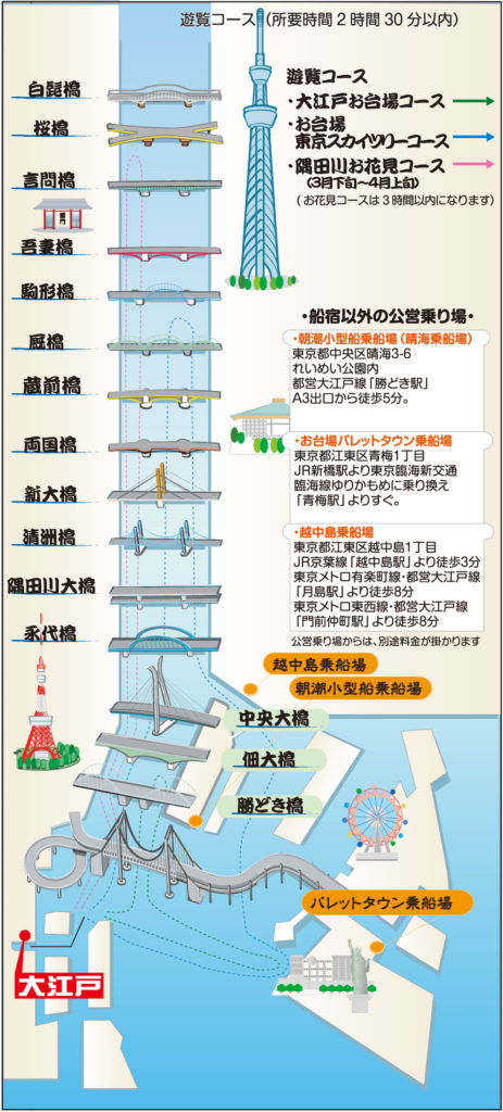周遊コースはお台場から隅田川ちょっと上って戻ってくるコース。