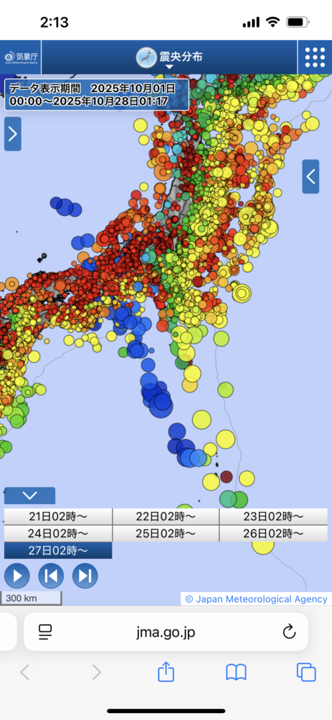 【のりと】注意⚠️と言ってる理由 2025 10/28 日常 2025年10月28日 のりと 2011年3月11日 直近1ヶ月。 トカラ起きて、地震が急激に減った。 パプアでも地震起きて少し経つ。 それで急激な寒暖差。 だから、気をつけて。 日常 【あき】この前のウォーキング 【とる】きもーちわるーい😂 この記事を書いた人 のりと 糀谷の大看板。多彩なアイデアと牽引力、細やかな気遣いでみんなのフォローも抜かりなく。せっかちなのがたまに傷ですが…、そこはスピード感が大切と思ってるトップセールスの感性かな(笑)正に頼れるリーダー。 コメント コメント一覧 (5件) まさかまた猛暑かと思ったが違った 返信 北関東連日だし、心配。 返信 ちょっと前に栃木県が震源地の地震があったような…。要チェック 返信 地震だらけで日本地図がほぼ埋まってる··· 返信 そうだよね。かつ、昔と地震分布が似ている訳です。トカラ起こって、バヌアツ揺れた。この1週間、南米までを含めた環太平洋でM6クラスが多発しているのです。 返信 コメントする コメントをキャンセルコメント ※ 名前 メール サイト 次回のコメントで使用するためブラウザーに自分の名前、メールアドレス、サイトを保存する。 email confirm* post date* 日本語が含まれない投稿は無視されますのでご注意ください。(スパム対策)