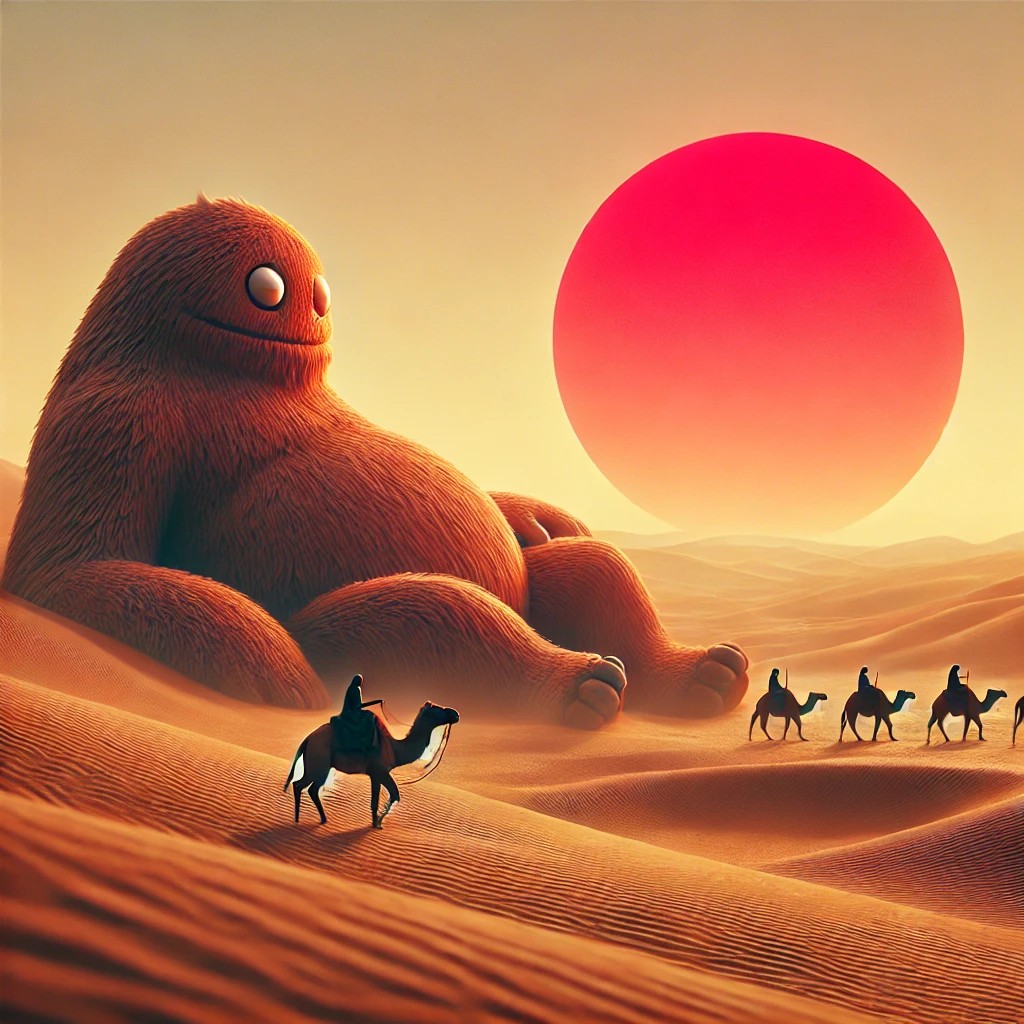 真っ赤な太陽 沈む砂漠に 大きな怪獣が のんびり暮らしてた