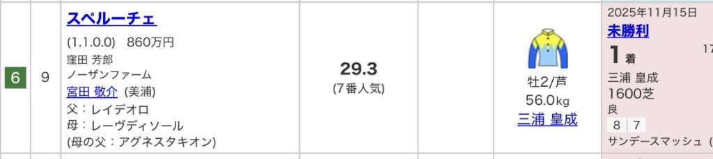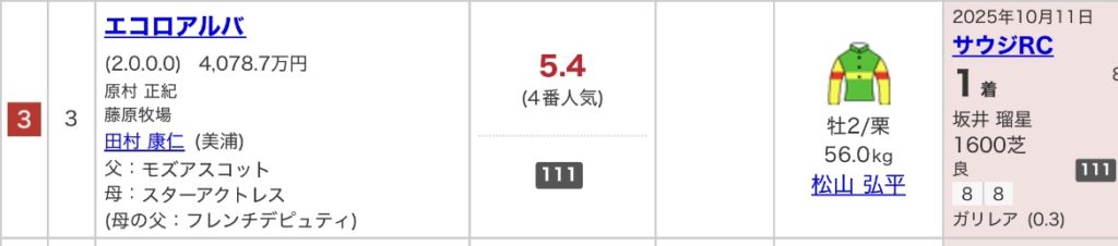 まずはこの馬。馬場が悪くても走れそう。軸です。モズアスコットは芝・ダート問わず走ってました。