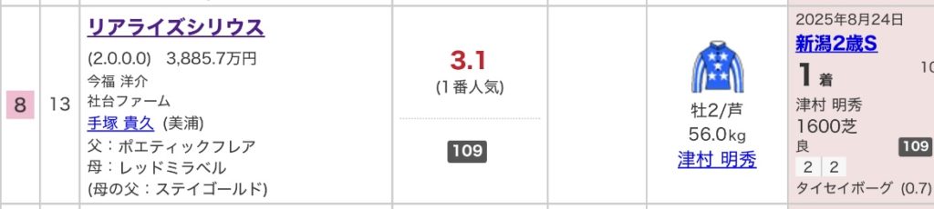 相手はこの3頭。中でもリアライズシリウスはかなりのポテンシャルを持ってる可能性有。注目してます。父ポエティックフレアは受胎率の低さから種牡馬引退の危機!産駒も少数…。どうなるか?