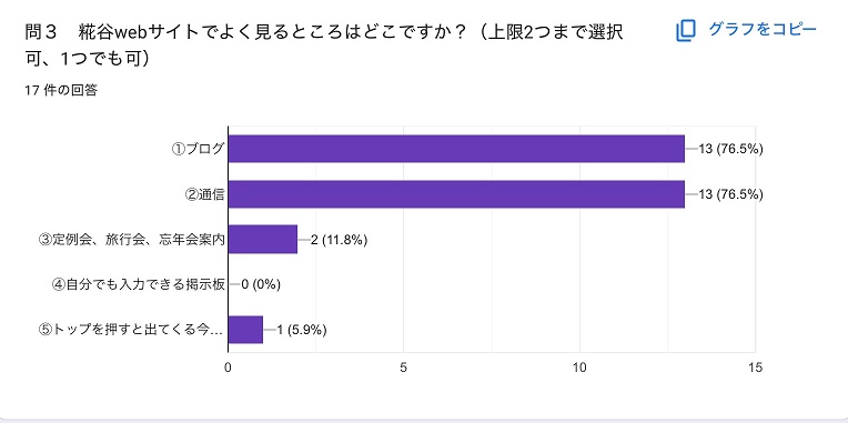 ブログ、通信は皆がほぼ見ているという結果になりました。ありがとう。