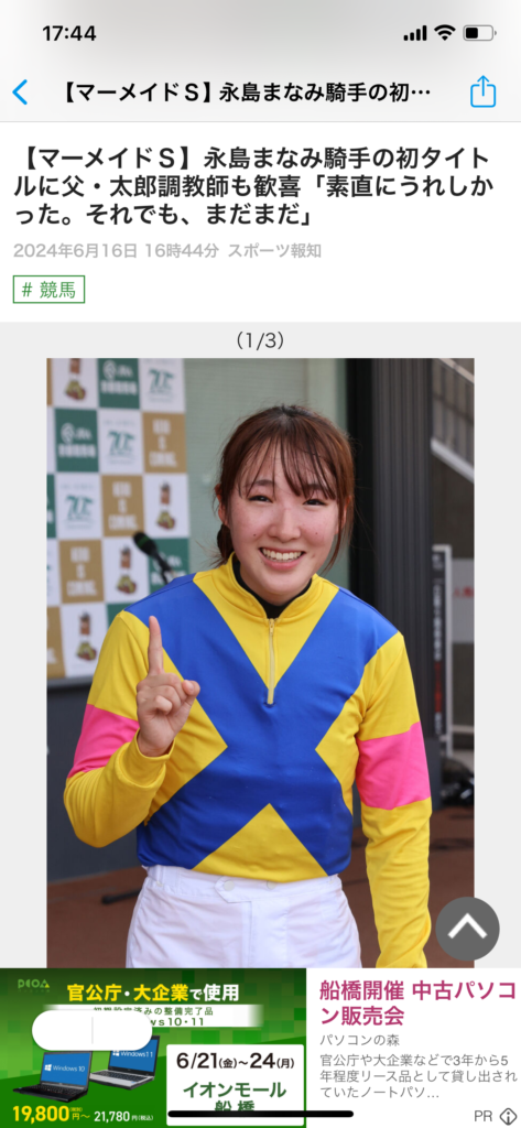 今日の重賞マーメードステークス(GⅢ)で永島まなみが優勝した。応援しているジョ... いが -